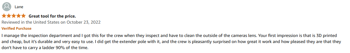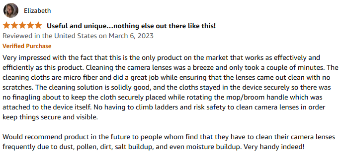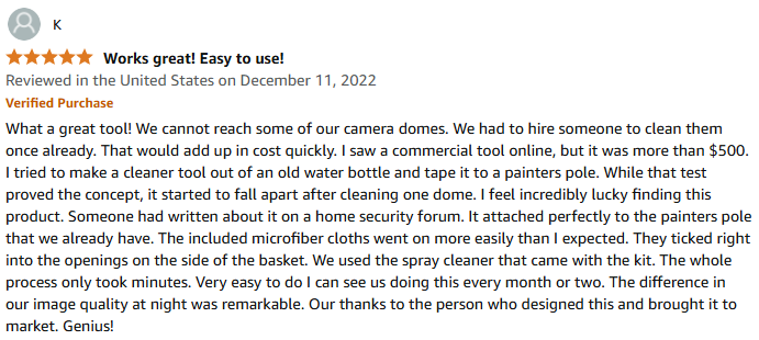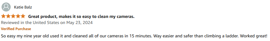 This camera was cleaned in less than 30 seconds, safely from the ground.